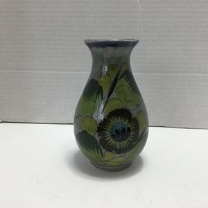 Vintage Tonala Grey Green Yellow Floral Pottery Vase