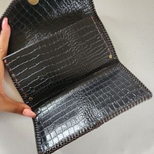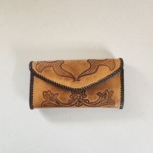 Vintage Tooled Brown Leather Billfold Wallet Womens Handmade 1970s Western Boho