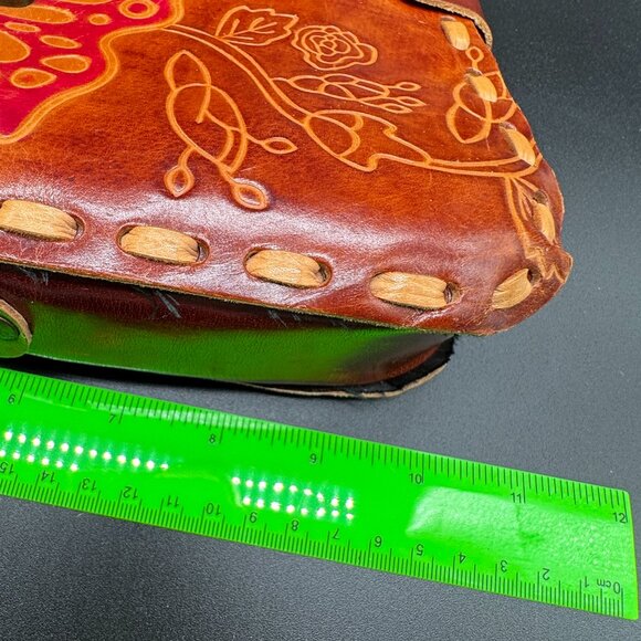 Vintage Tooled Leather Handbag Purse Butterfly Flowers Brown Red Tan India *READ
