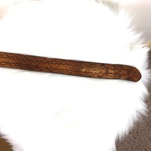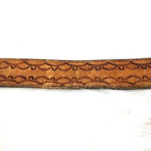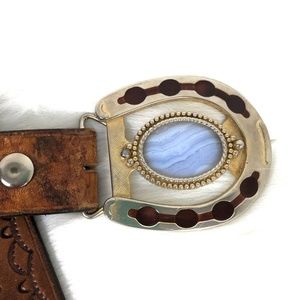 Vintage Tooled-Leather Belt With Agate Buckle 43"