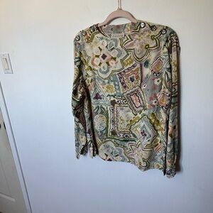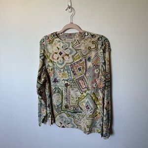Vintage Top Floral Paisley Design Hippie Boho Festival Multicoloured Long Sleeve