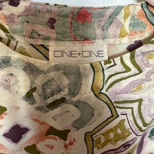Long sleeve top, pullover with buttons on the shoulders. Unique design. Brand is one + one.