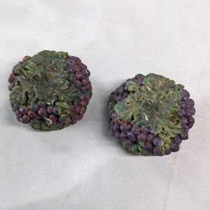 Vintage Topfirm Green Glass Spice Jars with Resin Grapes Lid, Set of 5