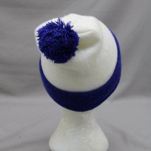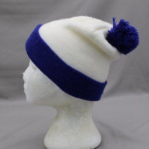 Up for sale is a vintage toque/beanie. It has a white body with a blue roll-up and pom-pom. The front of the toque has a felt crest with a goalie on it and Maple Leafs above. What a great toque do not miss out on it.