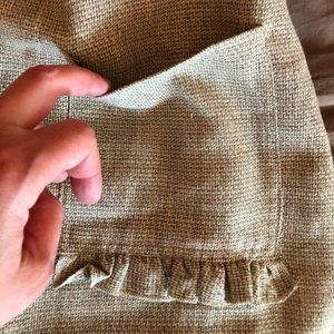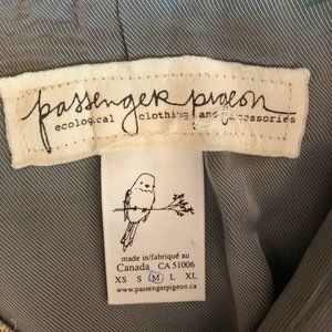 Vintage and one of a kind, handmade skirt with uneven blue ruffle hem from Toronto eco fashion brand Passenger Pigeon from early 2000s. Fully lined. Upcycled fabrics. Functioning front pocket. Hidden zipper closure. Beautiful pigeon screen print on front. Tweed-style light wool fabric blend (yak down and organic cotton). Measurements : Waist: 15" across lying flat. Length waist to hem: 22.25". NOTE: seam at the bottom of the zipper is slightly coming apart. Can be easily fixed with a couple of small stitches. See pic #8