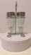 • Material: Clear glass shakers with chrome screw tops + chrome stand