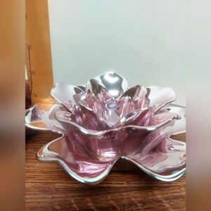 Vintage* Torre & Tagus mauve/pink metal alloy lotus tealight holder (approx 6" across). Lovely with candle or as is.