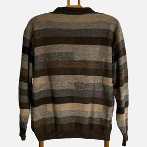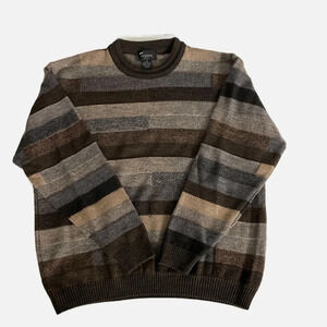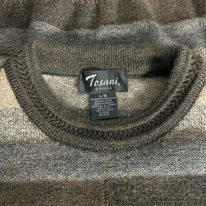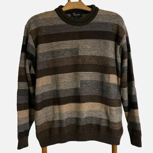 Vintage Tosani Men’s Crewneck Sweater Large Wool blend Brown Tan Striped
