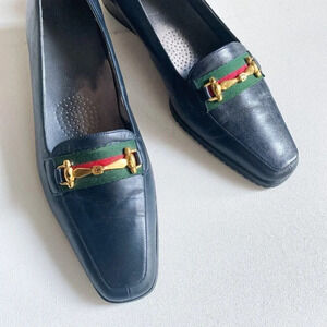 Vintage Town Shoes Horsebit Detail Black Low Wedge Loafers 38.5