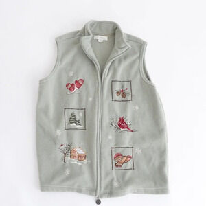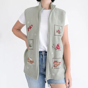 Vintage Tradition Country Collection Sage Zip Up Sleeveless Vest with Holiday Size Large