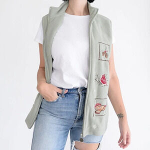Vintage Tradition Country Collection Sage Zip Up Sleeveless Vest with Holiday L