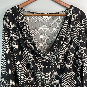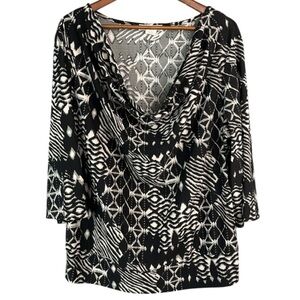 Vintage Tradition Printed Cowl Neck Top Black White Grey 3/4 Sleeves Pullover 2X