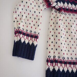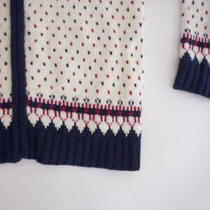 Vintage Tradition White Blue Red Winter Reindeer Snowflake Zip Up Sweater M