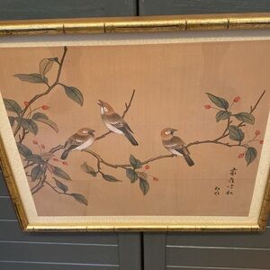 Beautiful floral and bird art prints. Set in elegant gold frames. Perfect for home decor.