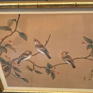 Beautiful floral and bird art prints. Set in elegant gold frames. Perfect for home decor.