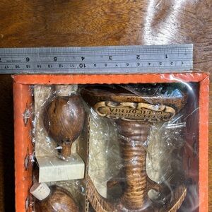 Vintage Treasure Craft souvenir Palm Springs California palm tree salt and pepper shakers. Made of ceramic, brushed with paint for a faux woodgrain effect. This set is still in its original packaging and appears to be in mint condition. The box itself is a beauty with its vintage graphics. The plastic has been ripped on the front, but is intact everywhere else, so the cardboard has been protected.