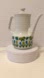 Brighten your table with this charming vintage porcelain coffee/tea pot from Trimont Japan. Featuring a tall, elegant silhouette with a flared spout and sculpted handle, the pot is decorated in a playful mid-century floral and butterfly pattern. Rows of blue and green tulips are topped with colorful butterflies, creating a whimsical, cheerful design.
