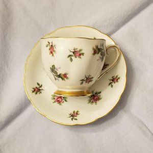 In very good condition, no chips or cracks. There is a very small spot of discoloration inside the cup. The bottom of the saucer shows minor signs of wear where it touches the table.