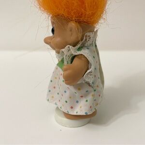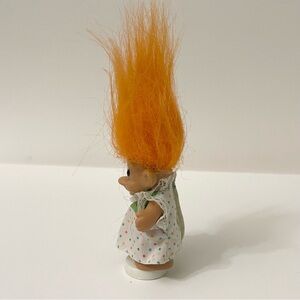 Vintage Troll Doll with Orange Hair Toy on Stand