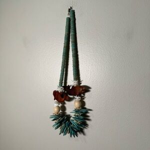 Vintage Tropical Necklace Turquoise Wood Like Beads western nautical boho