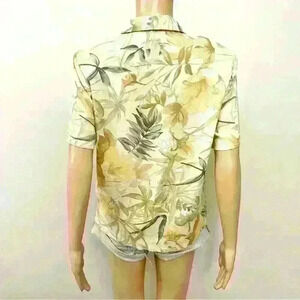 Vintage Tropical Pattern Hawaiian floral short sleeves button down blouse shirt.