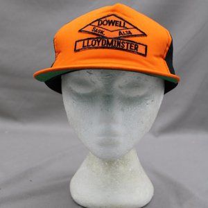 Up for sale is a vintage oil company hat. This hat is for Dowell from thier operations in Lloydminster Canada. The hat features a black body with orange front (halloween colours). The front of the hat is patched with the Dowell logo along with wording Lloydminster. What a great vintage trucker hat do not miss out on it.