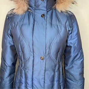 Vintage True Character Goose Down Blue Parka Jacket Real Fur Trim Outdoor