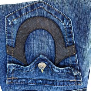Vintage True Religion Jeans Size 32 STRAIGHT Blue Leather Tab