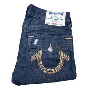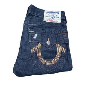 Vintage True Religion Jeans Size 33 STRAIGHT GEM HORSESHOE Blue