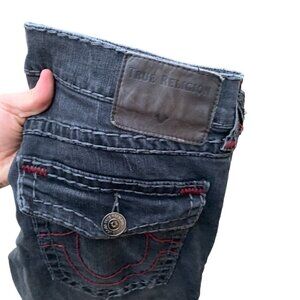 Vintage True Religion Jeans Size 34 RICKY Gray Red Stitch