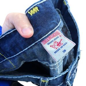 Vintage True Religion Jeans Size 36 RICKY SUPER T Yellow Stitch Blue