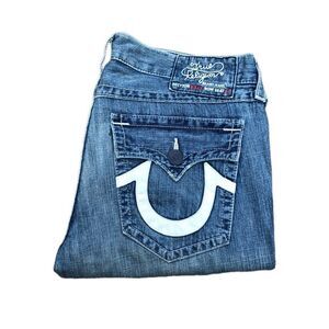 Vintage True Religion Jeans Size 38 BILLY LEATHER Horseshoe Blue