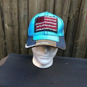 I have no clue what the size of this hat is, but it is placed on an adult foam head for size reference. Also note that some vintage hats do lose their shape over time in the front and top portions of the hat, while others do not.