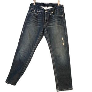 Vintage True Religion Straight Leg Dark Wash Low Rise Jeans Contrast Stitch 31