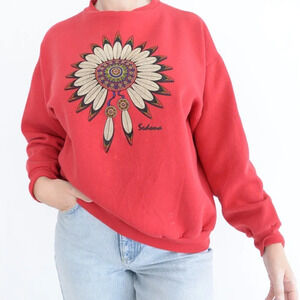Vintage Tultex Red Sedona Feather Dream Catcher Puff Print Crewneck Sweater L