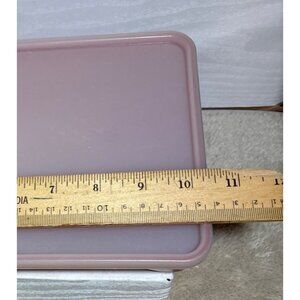 This Tupperware ice cube tray with a secure pink lid offers a durable and reusable solution for ice or food storage. Its classic design ensures long-lasting utility and efficient organization.