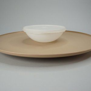 Vintage Tupperware Dip-n-Serve almond beige & white bowl and tray serving set.