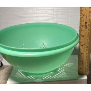 Vintage Tupperware Jadeite Green Plastic Colander Strainer Bowl 9"
