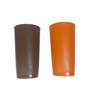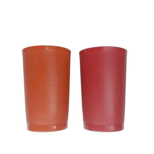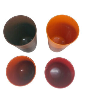 Set of 4 vintage retro plastic Tupperware cups. There are two sizes and two cups of each size.
