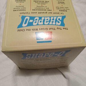 Vintage Tupperware Shape-O red and blue ball with yellow blocks in the box