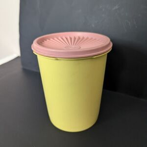 Vintage Tupperware Yellow and pink 1970s canister 811-6
