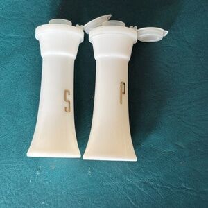 Vintage tupperware salt and pepper shakers , Hourglass shaped with tight fitting lids #831-19, #831-28