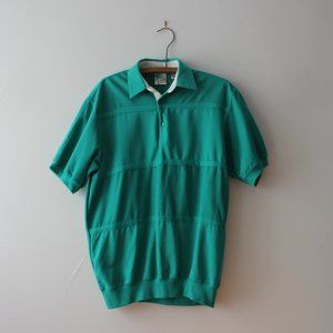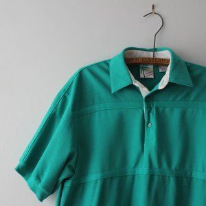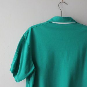 Vintage turquoise polo shirt. Very good condition, beautiful color. 65% polyester, 35% cotton. Size Medium.