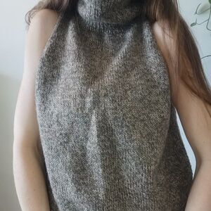 Vintage Turtleneck Wool Cowl Neck Sweater Vest 90s Handmade Academia Gorpcore