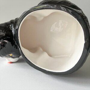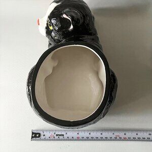 Vintage Tuxedo Cat Cookie Jar Ceramic Black White Kitten w/ Red Yarn Ball Rare