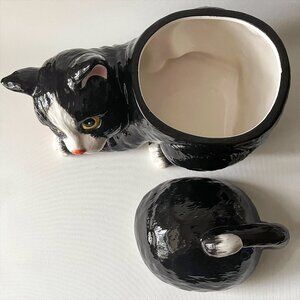 Features: Black And White Cat with Red Yarn, Kitten with Yarn Ball, with Lid (Tail as Handle), Glossy Glazed Finish