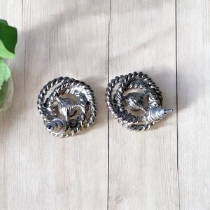 Vintage Twisted Knot Circular Silver tone Pierced Earrings.