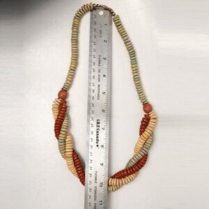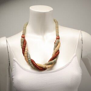 Vintage Twisted Wood Bead Necklace 3 Strand Retro Boho Brown Cream Blue