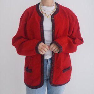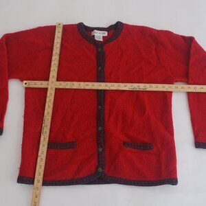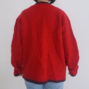 Vintage Two Roads Red 100% Wool Button Up Cardigan Sweater M