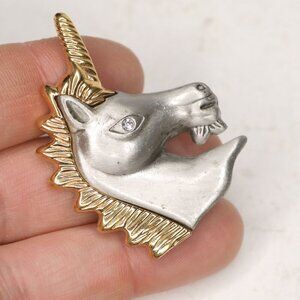 Vintage Two Tone Unicorn Metal Pin Brooch Horse Gold Silver